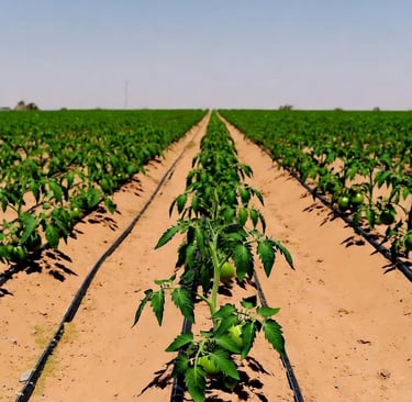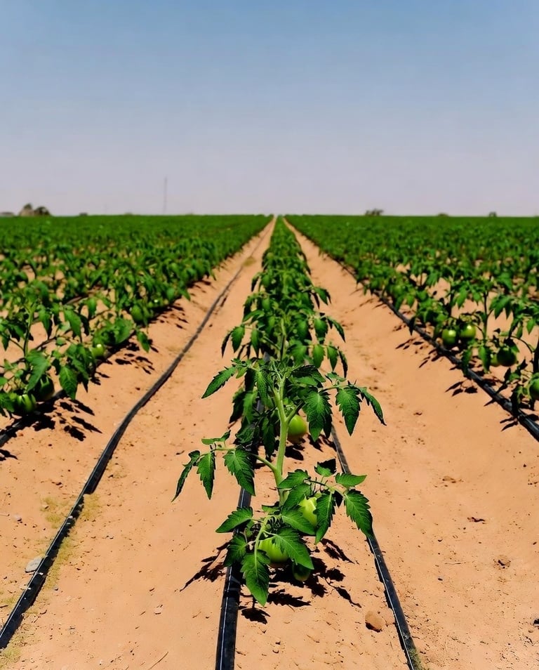 Nos tomates sont cultivées à Tinerkouk, dans une zone fertile et plane du désert, au sol compact et non sablonneux — un terroir rare où la lumière saharienne concentre la saveur et la densité de la chair.